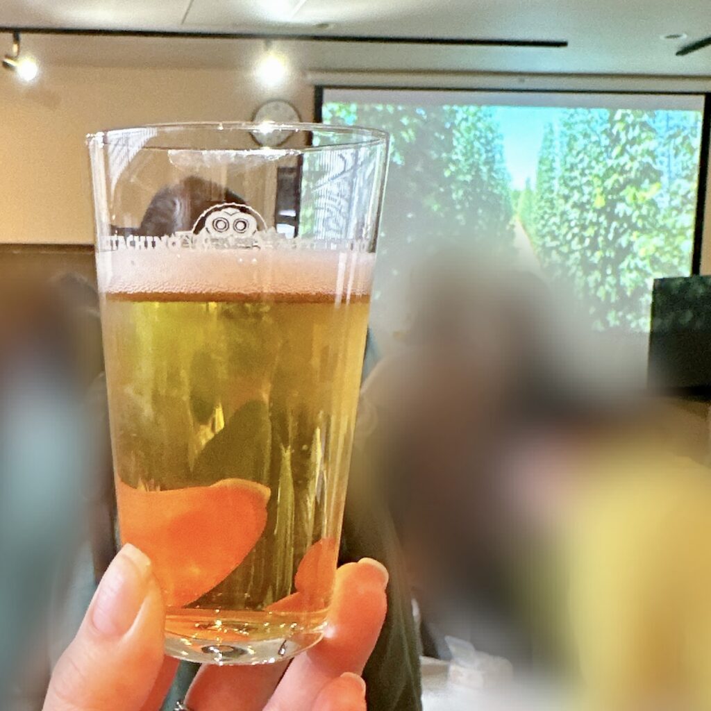 工場をひととおり見学させていただいたら、試飲タイム! 定番の常陸野ネストビールをグラスにいただきます。