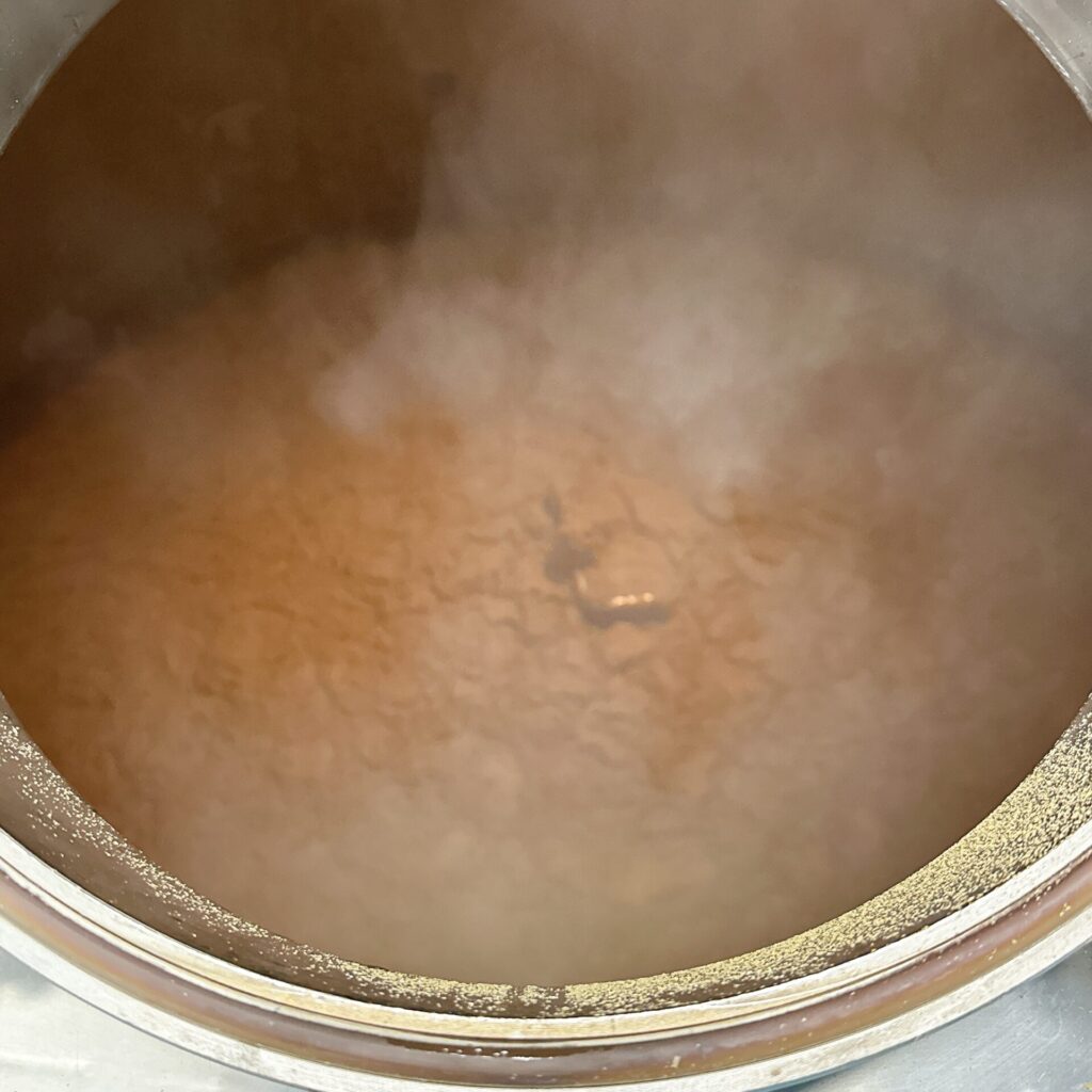 タンクの蓋を開けて、発酵している過程も見せてくださいます。発酵で熱が起きてほかほか。立ちのぼる湯気とともに、ビールの苦味がほわっと香ります。