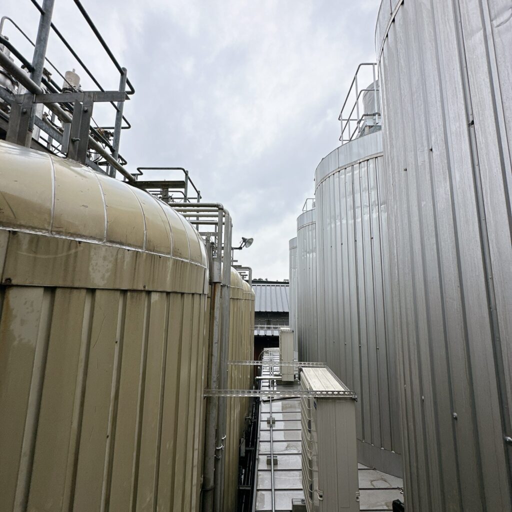 大きいタンクには定番主力の銘柄をドドンと貯蔵。建物ですか? という大きさのタンクが立ち並ぶ様は圧巻です。