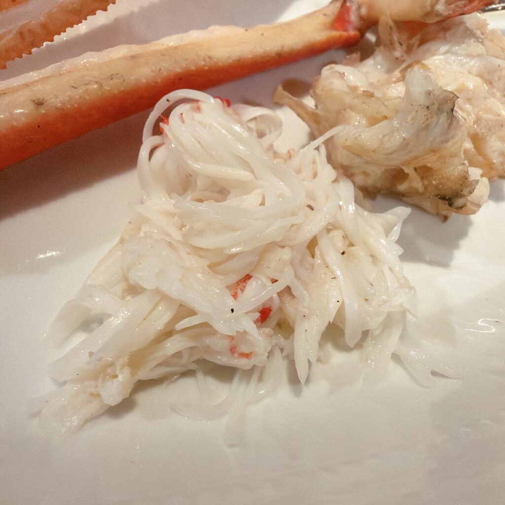 このほぐした身の立派だこと! 甘みはもちろんですが、冷凍のカニでは感じたことのない、ぎゅうっと濃厚なカニの旨みが詰まっています。カニの味ってこれか! の思いです。