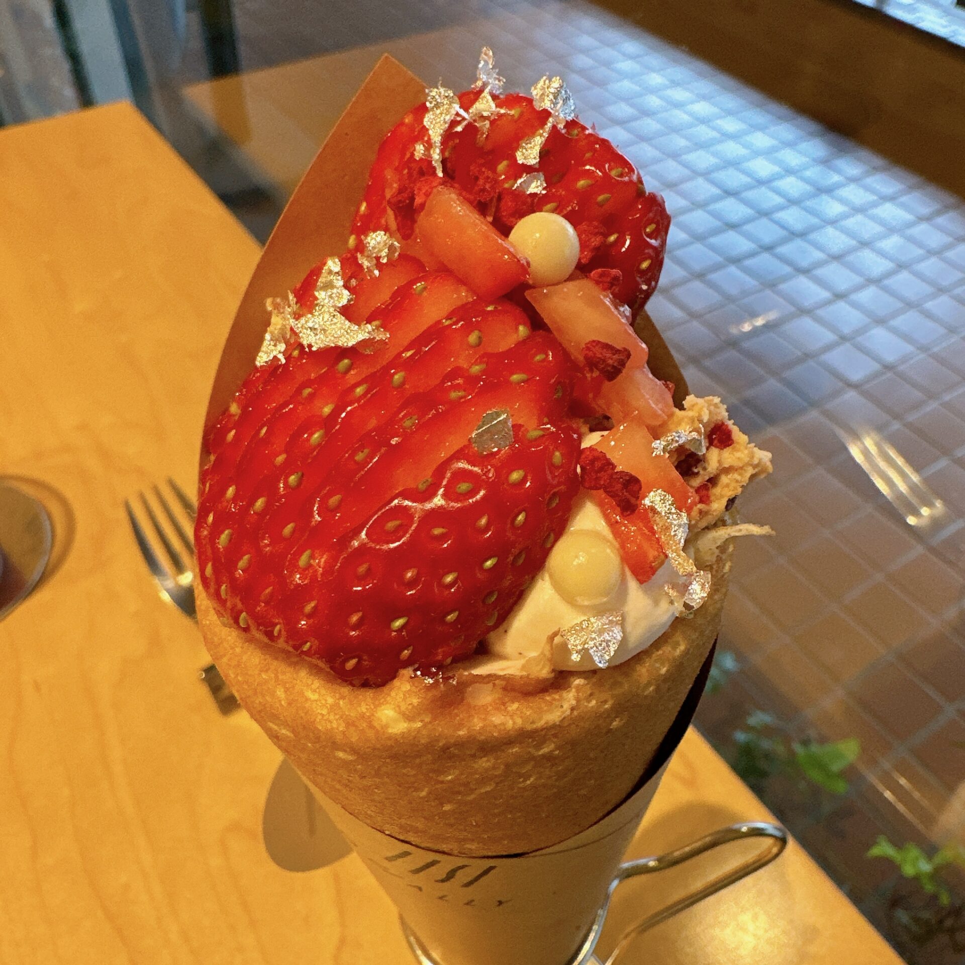 今回ご紹介するのは、2023年1月の「クレープ・ボナネ・フレーズ」。“Bonne année =良い一年を”をテーマに、旬のいちごをたっぷり使い、みずみずしくさわやかな華を感じさせてくれました。過去のクレープを食べることは今はできませんが、最新を楽しむ参考になれば幸いです。