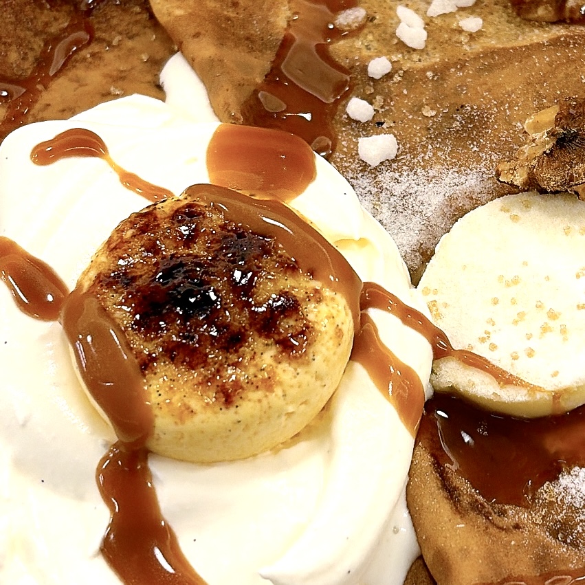 先日ご紹介した、この世でいちばん美しい茶色の『塩キャラメル』に、ジャージーブリュレとマダガスカルバニラシャンティをトッピングした『クレープ・塩キャラメル・ブリュレ』。