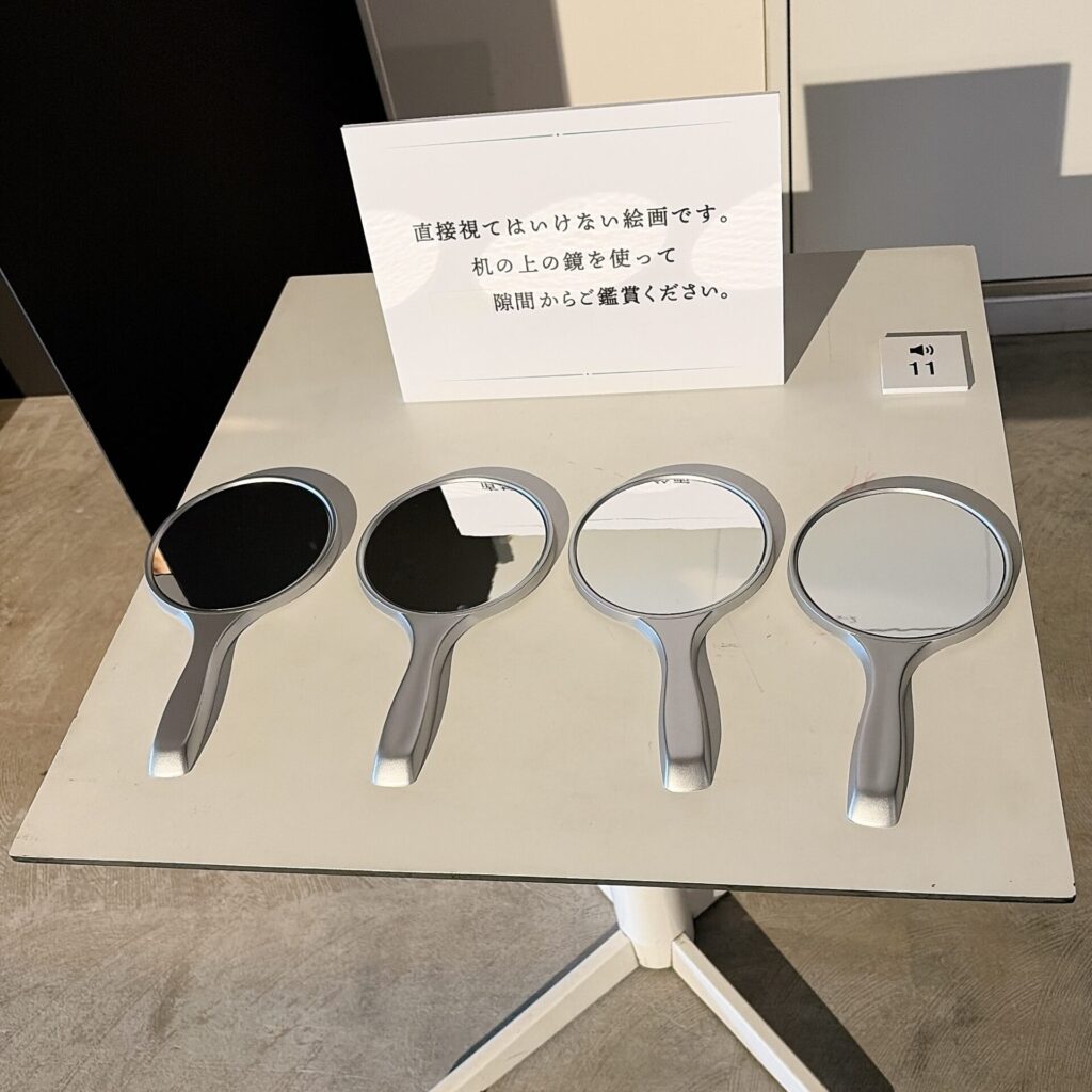 というわけで、鏡を差し込み、そこに映った作品を楽しむという、覗き見スタイルでの鑑賞となります。
