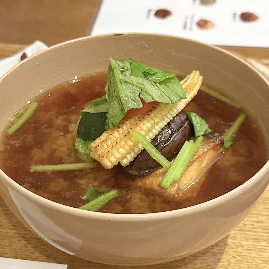 佐野味噌醤油店のお味噌、お出汁をふんだんに使って仕上げたおみそ汁を楽しめます。