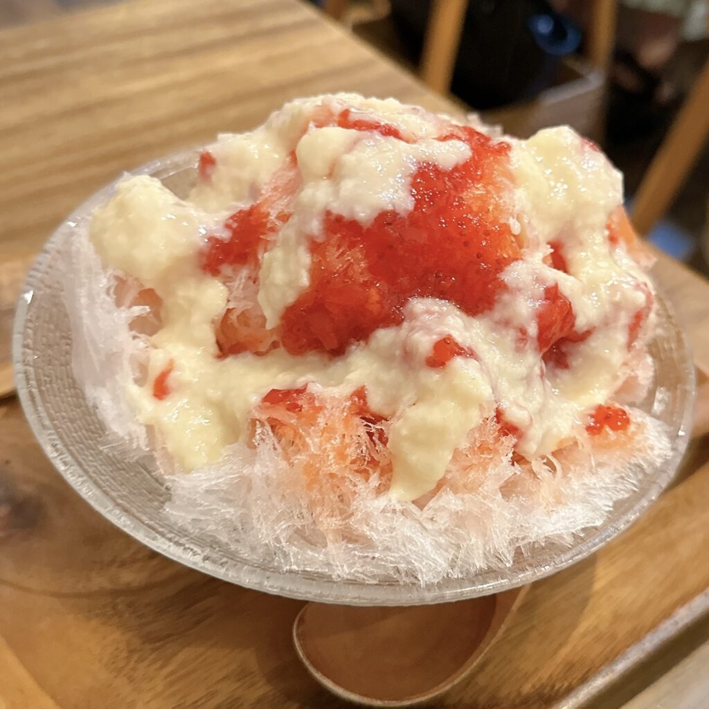 イチゴのシロップもコンフィチュールくらいの果肉感があり、かき氷でこんなイチゴ食べられるんです? という贅沢な味わいでした。