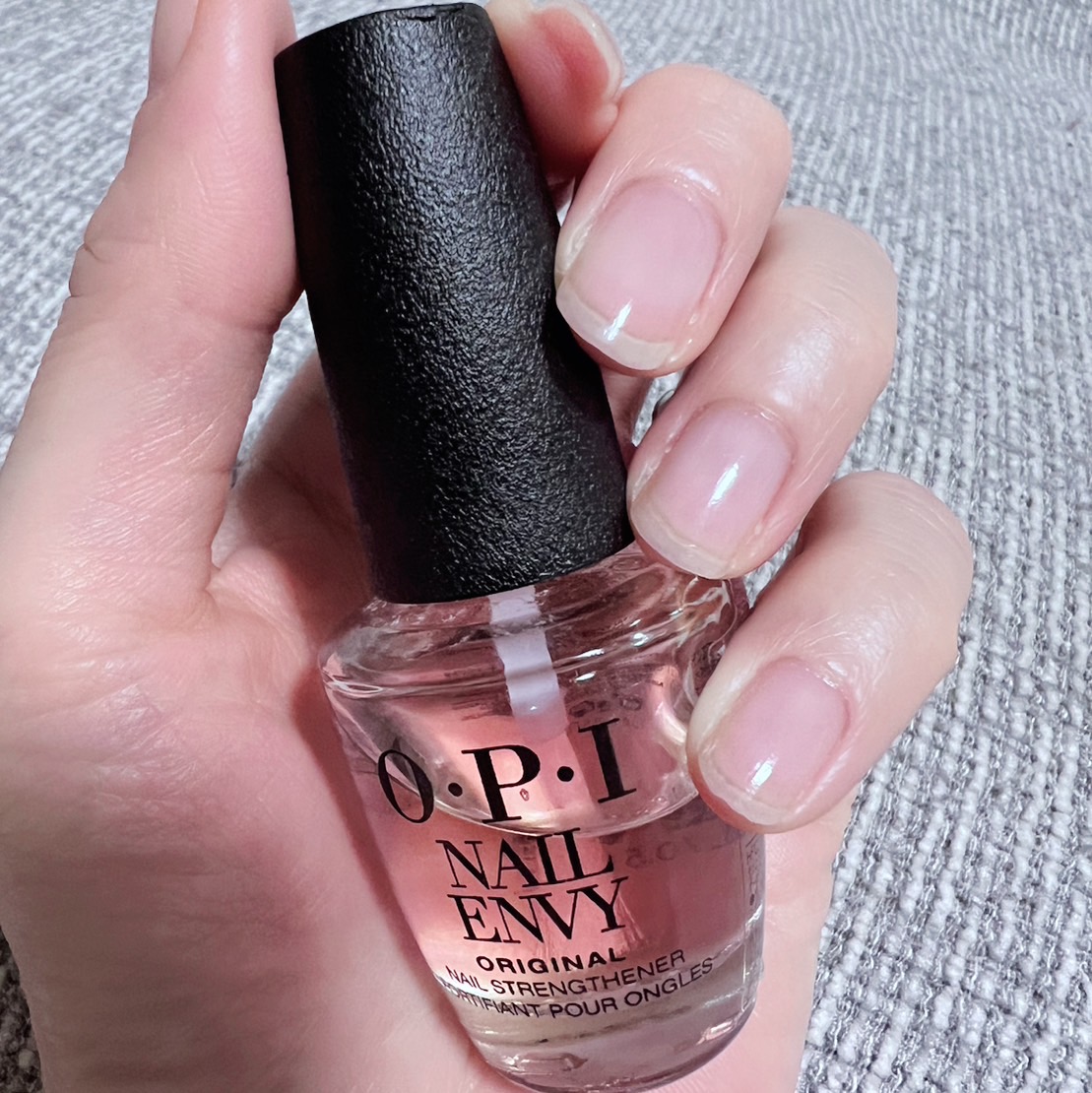 検索の日々でたどり着いたのが、O・P・Iネイルエンビー。1本4290円と、今までセルフネイルもしてこなかった筆者には、育爪とはいえ、透明マニキュアに4000円を超える金額を出すことは勇気がいるものでした。しかし指先はボロボロ。これ以上、成すすべなし状態なので藁にも縋る気持ちで購入してみました。