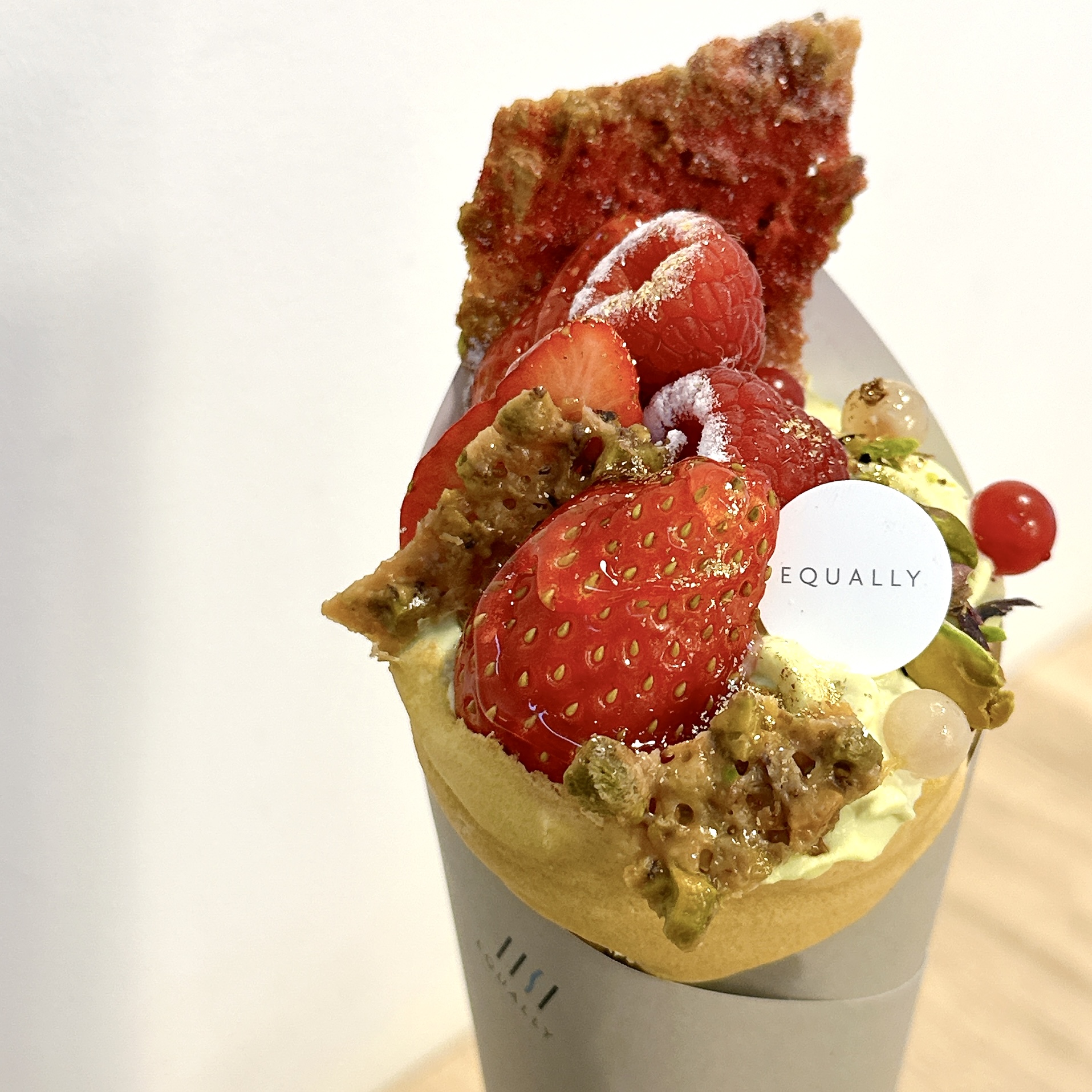 イクアリーのクリスマスといえば《いちご×ピスタチオ》。実店舗を構える前から変わらぬ王道の組み合わせですが、今年も鮮やかにアップデートされています。