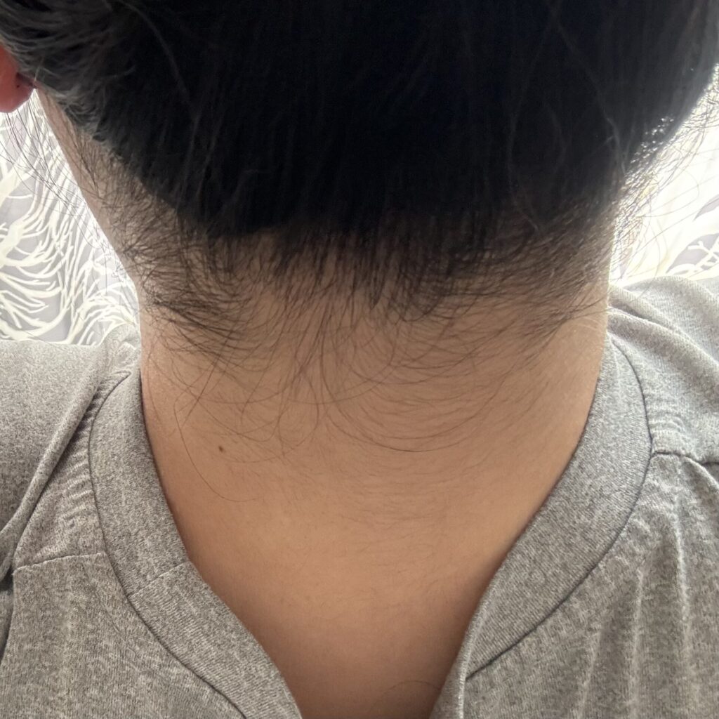 施術前と後の写真を比べると、明らかに“首が長く見える”。そして、なんだか垢抜けて見える。これは、「清潔感が出る」とかそういう次元を超えて、顔周りの印象を変える“額縁”が整うという感じ。