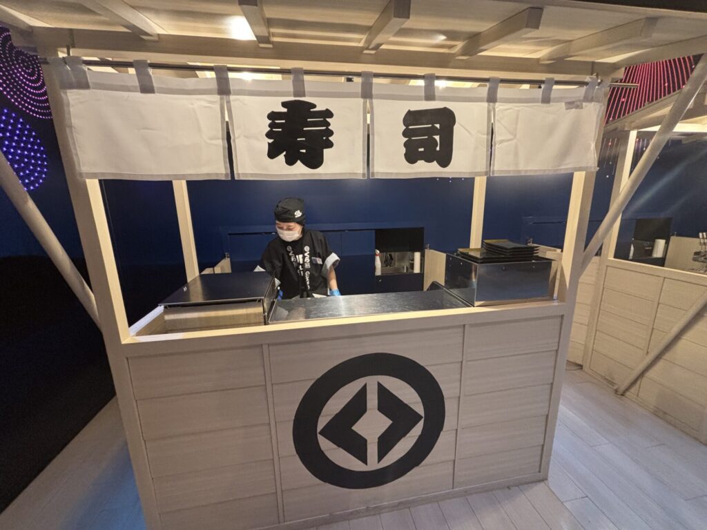 おうち気分でのんびりお酒とお寿司を味わって、興が乗ったら屋台を楽しみに行って。なんて贅沢な空間なんでしょう。