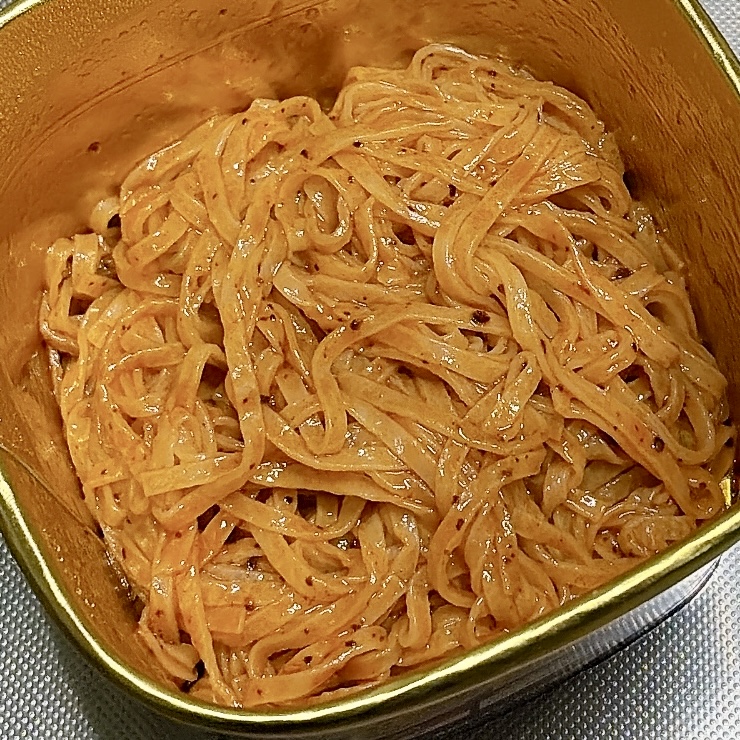 『麻辣味』に続いて、期待が高まる『中華房 麺ピー まろゴマ味』。こちらは辛さよりも濃厚さやごまの香り推しな印象。