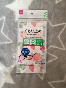 ダイソーの『くもり止め眼鏡クロス(フルーツ柄)』は、税込み110円で購入できます。数百円以上する一般的なくもり止めよりも効果は控えめですが、110円で購入できるくもり止めとしては十分役立っているように感じました。