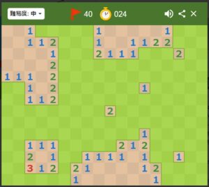 難易度は3段階あり、デフォルトでは難易度:中に設定されています。マスをクリックしたとき、周囲に地雷が少ないほど一気に開くマスも多いシステム。これが結構爽快なんです。