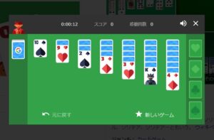 山場からカードを取っていくのですが、「簡単」は1枚ずつ出てくるのでリカバリが効きやすいです。Google検索版『ソリティア』は「元に戻す」をクリックするたびに1回前の手に戻れるので、難易度は割と低いほうだと思われます。