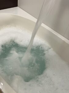 その後は、ソーラン節でも、推しの曲でも、アニソンでもなんでもいいです。リズムに乗ってひたすらお風呂のお湯をすくってこぼす、すくってこぼす、を繰り返し、お風呂を泡泡にします。