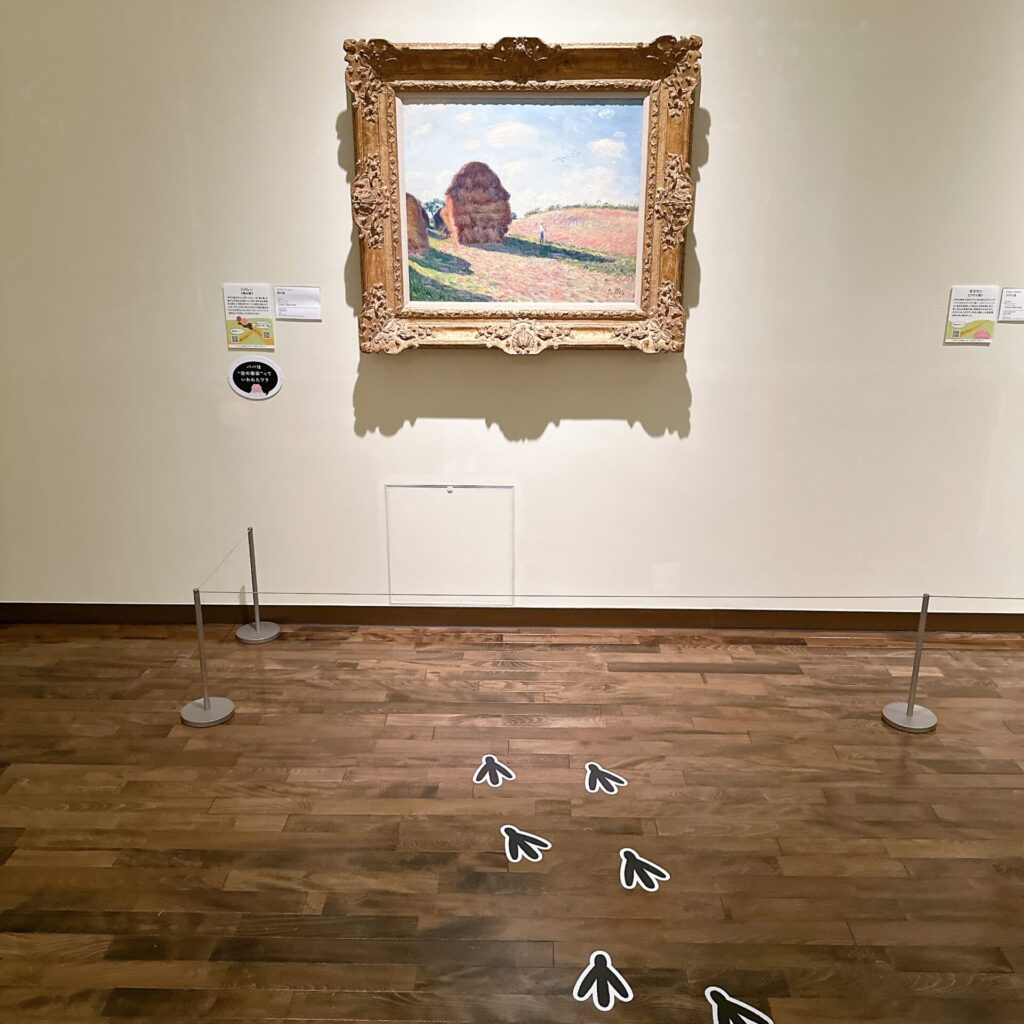こちらは公式マスコットキャラクター【ももわら】の実家ともいえる、シスレーの「積み藁」。“空の画家”とも言われるだけあり、空の見せる光の感じがとても印象的。
