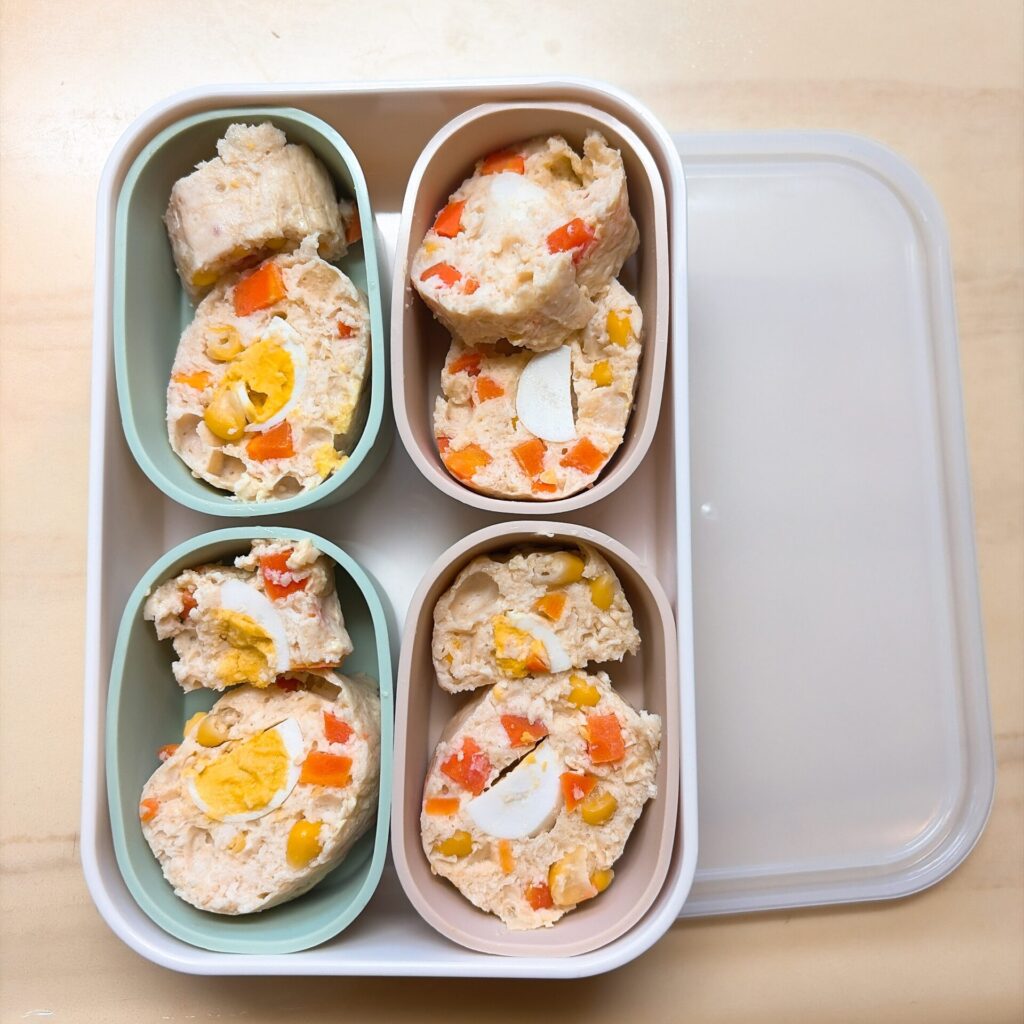 こちらは卵を入れたチキンミートローフを、オーバル型に保存しました。夕飯時のちょっとした一品に活躍しましたが、このままお弁当に詰めてもいいかなと思います。