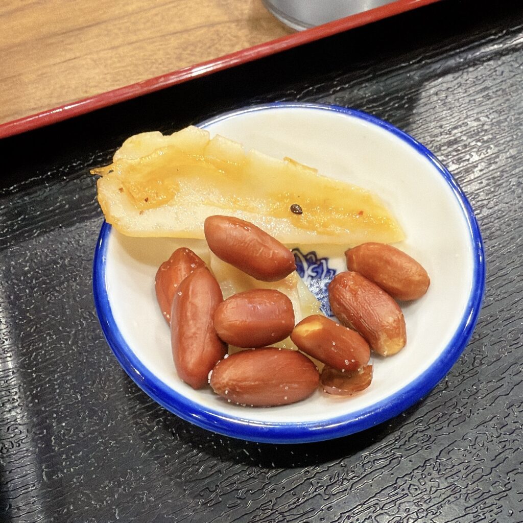 中華のおつまみでお馴染みの、味付きのピーナッツと、白いのはなんだ? と思ったら、やげん軟骨!