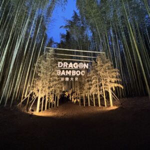 放置竹林を整備し、全長240メートルの幻想的な光の小径を創り出した竹あかりイベント『Dragon Bamboo』プロジェクト。地域住民とプロ集団「CHIKAKEN」による共同演出で、2025年の常陸大宮市辰ノ口さくら祭りから開始されました。