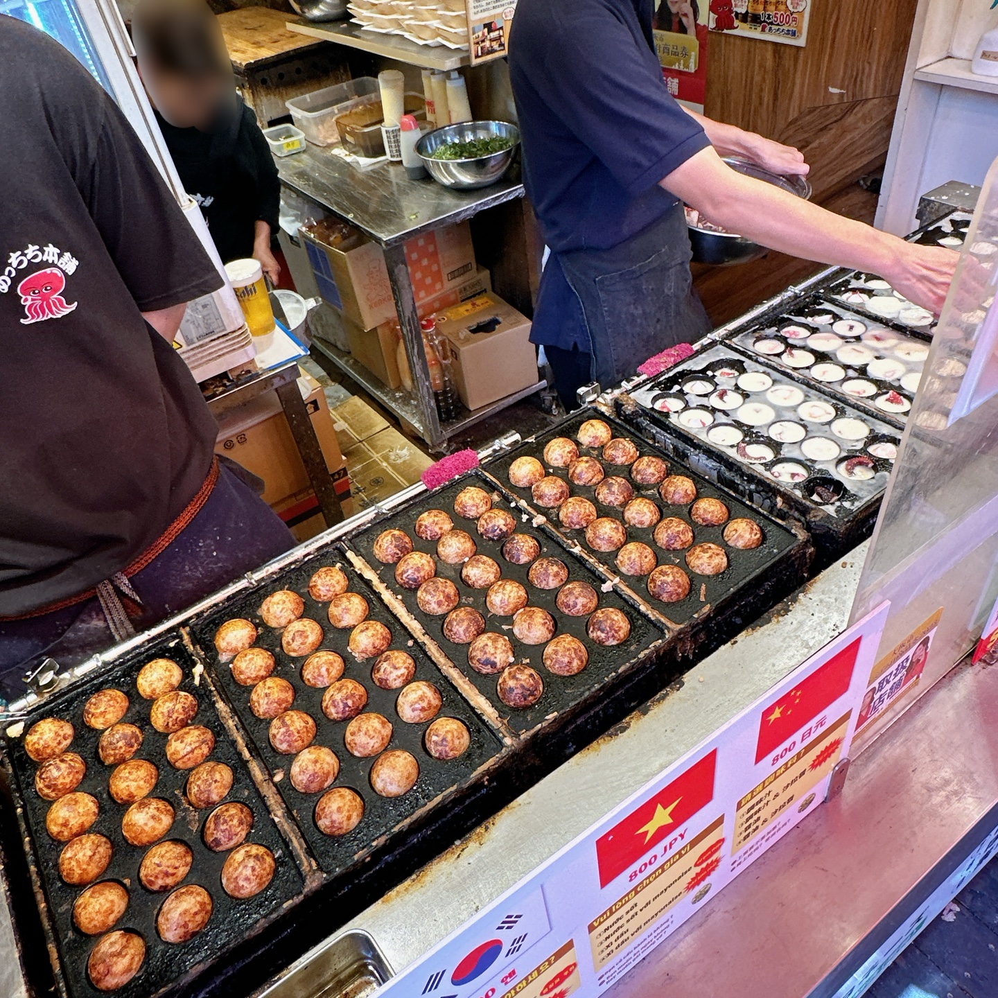メニューの展開も大阪だなぁ、と感じます。地元のたこ焼き屋さんは、どうしてもソースとマヨネーズがメインを張りがち。でも大阪に行くと、当たり前のように塩が選択肢に入っていて嬉しい。塩で食べるたこ焼き大好き。