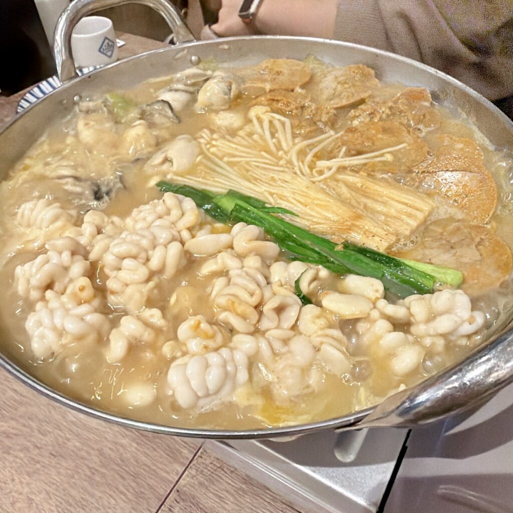 友人がお鍋のお世話をしてくれて、いい感じに出来上がり。ぷりっとした牡蠣と白子に、ほどけるあん肝。もうビジュがいい!