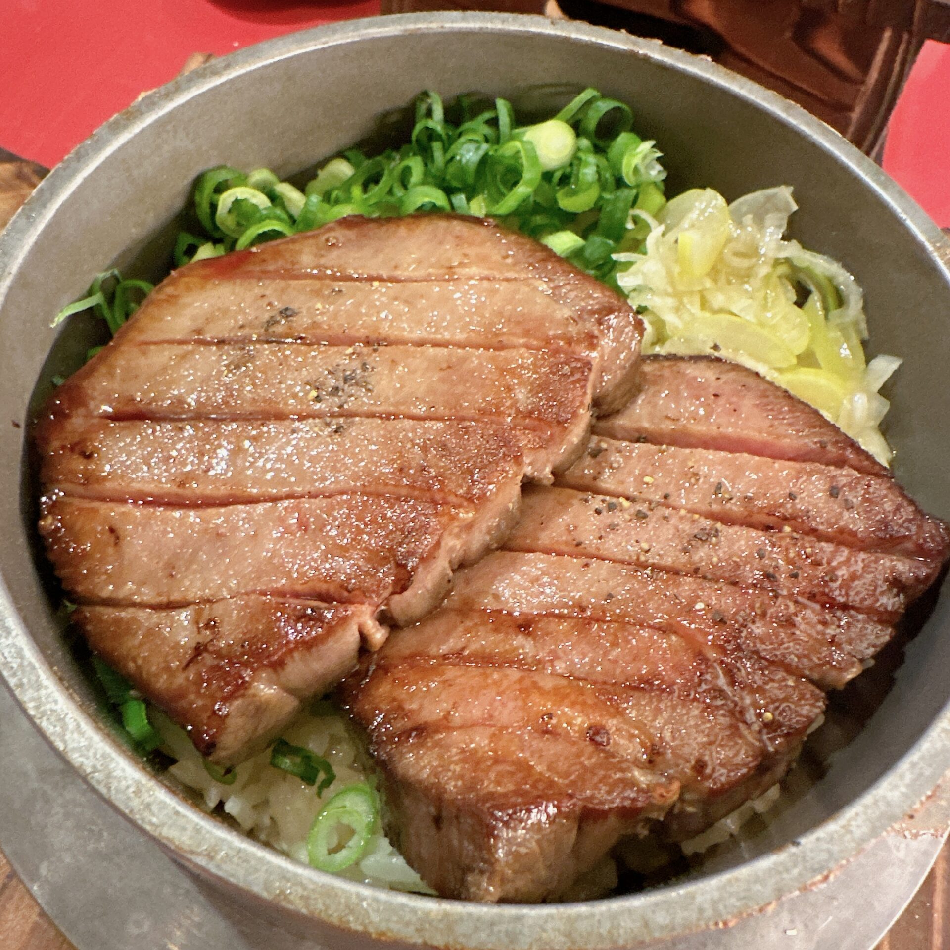 これ、牛タンめちゃめちゃやわらかくて。すーごい美味しい! ご飯とお肉の間のネギがいい感じにお肉の脂と旨みを受け止めていて、それをわさっと混ぜるわけですよ。行き渡る美味しい。最高。