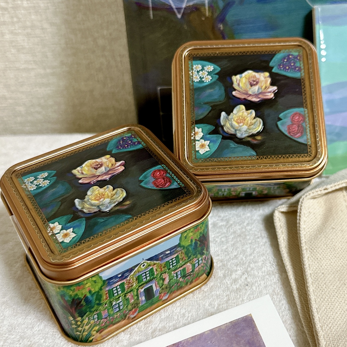 さまざまな美術展でお菓子缶を監修している「青山デカーボ」。これまで、2021年のゴッホ展で『ひまわり缶』を、2022年のピカソ展では『ドイツ缶』を監修。確かな実績のもとで作成された『モネの庭缶』も、それは可愛らしく美しい出来栄えです。