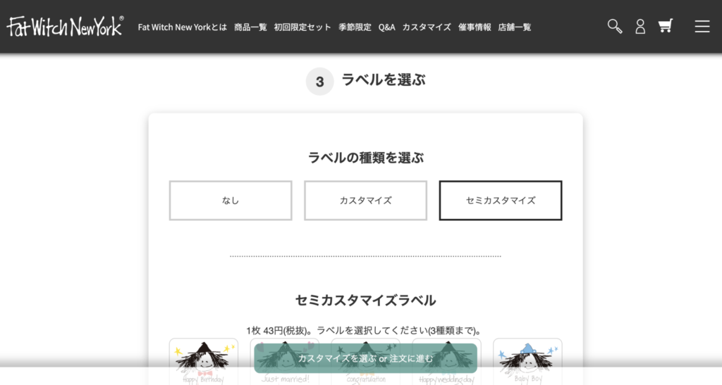 今回はセミカスタマイズをご紹介しましたが、もっとこだわりたいときは、ラベルの色やウィッチの絵柄を豊富なラインナップから選べるカスタマイズがおすすめ。