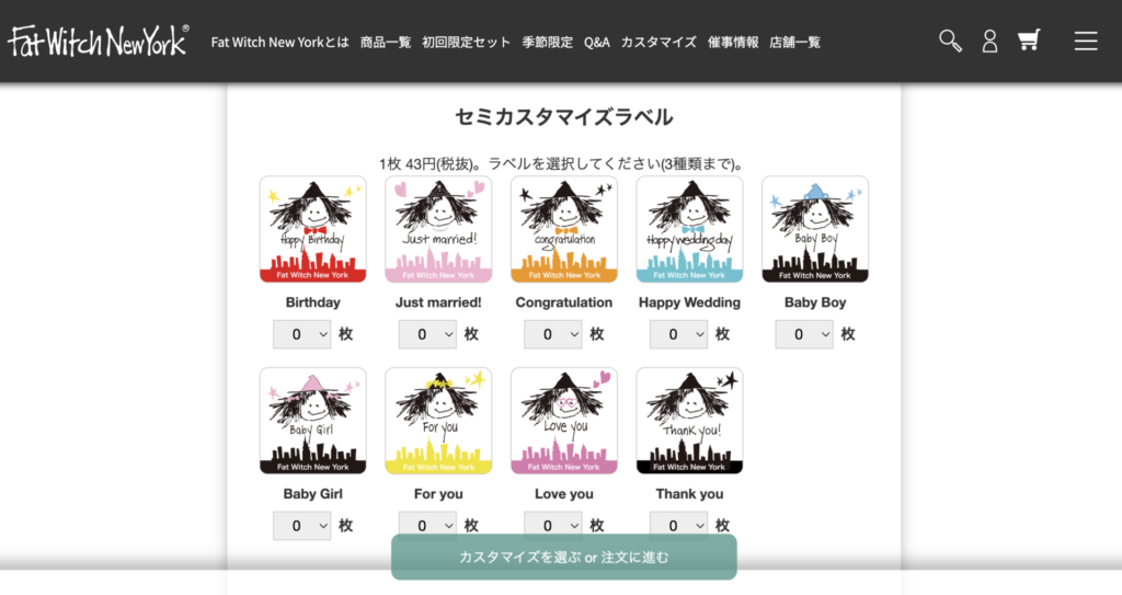 ひと味違うこだわりギフトに、ファットウィッチニューヨークのカスタマイズオーダーを利用してみてはいかがでしょうか。