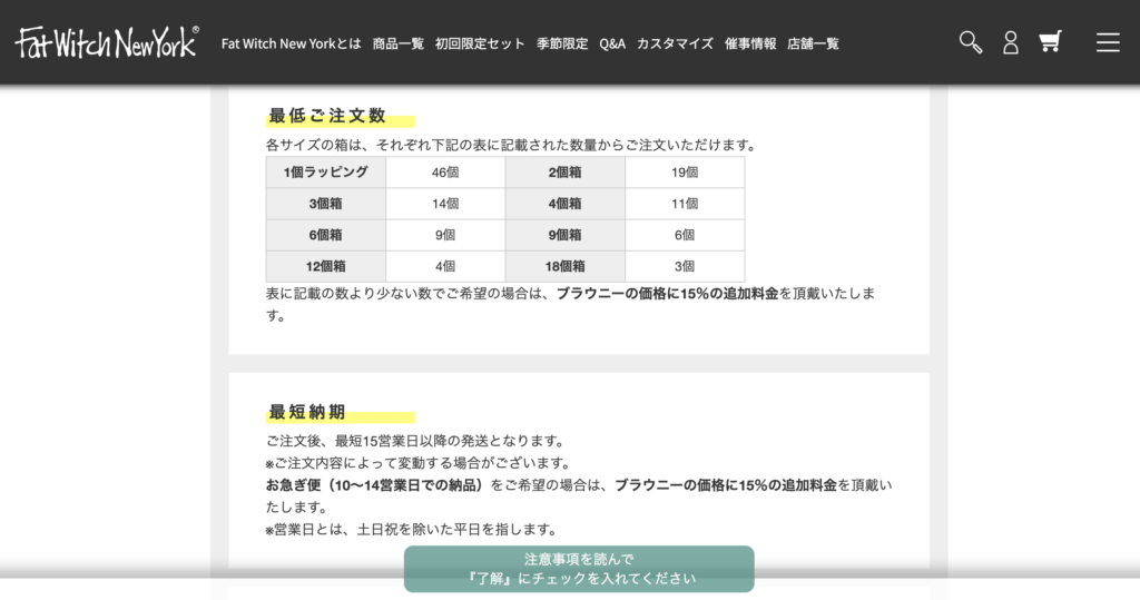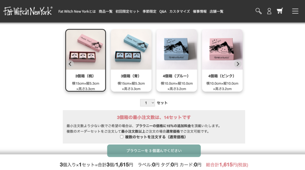 最小注文個数が表示されますが、ブラウニーの価格+15%で最小未満の数量でも注文できます。